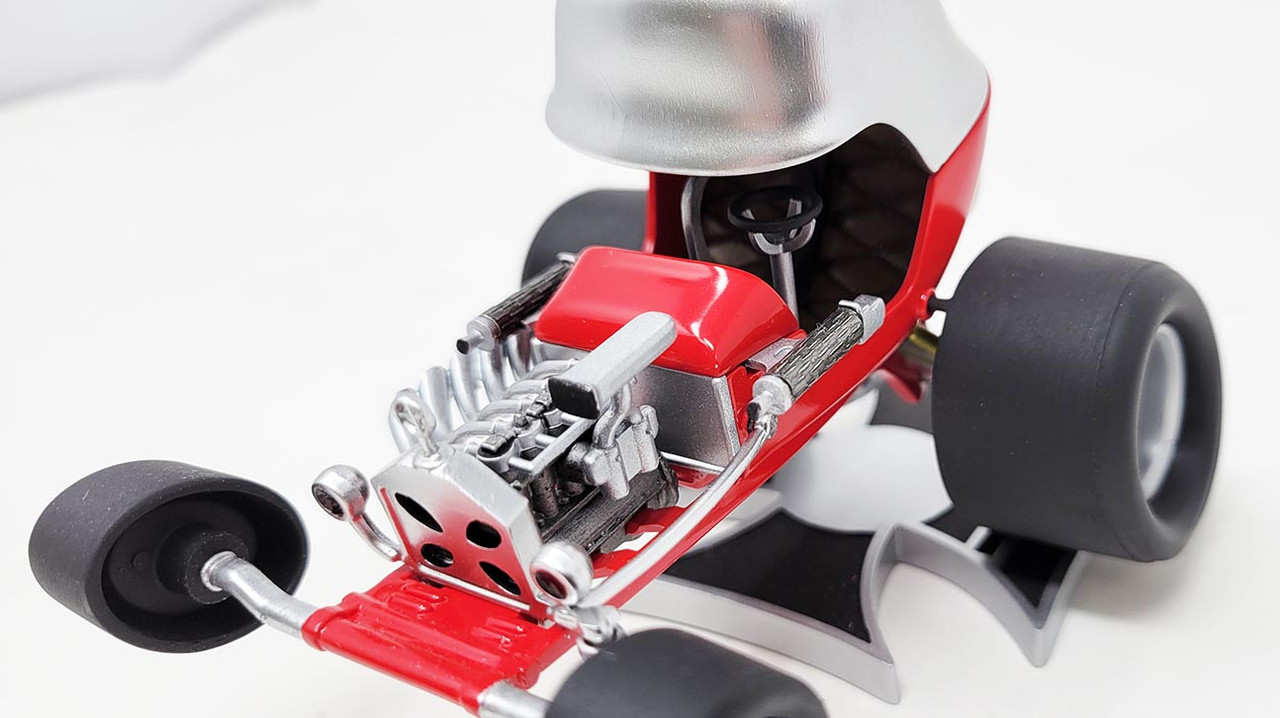 Maßstab 1:24. Eine neue Interpretation eines TD-Klassikers. Dieser Bausatz ist in Hellbraun mit einem Baum aus gebranntem Kupferchrom gegossen. Er enthält Gummireifen und Klarglas. Neue Grafiken und Aufkleber von Kelly Daniel.